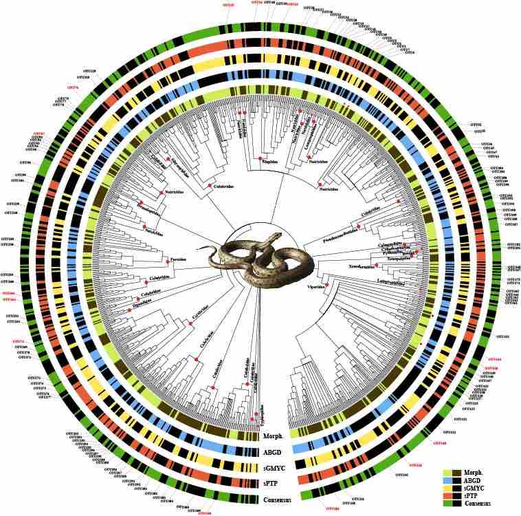 中国具有丰富的蛇类物种多样性,已知现存的蛇类有283种,隶属18科65属(截止2020年12月31日),占世界总蛇类种数的8%左右。近年来,中国蛇类物种数量仍然在不断增加。此外,近几十年来,由于对蛇类资源的过度开发利用,加之栖息地遭破坏、非法的收集和蛇类贸易等,中国蛇类面临严重的威胁。根据IUCN的评估,其中有2种极危蛇种、4种濒危蛇种,18种易危和近危蛇种。同时,蛇类具有重要的应用价值,自古以来被人类所食用、药用以及作为化工原料,其中蛇毒是极为珍贵的药物原料,在医药领域中有很大的利用价值。本研究构建的DNA条形码参考数据集为中国蛇类研究、资源保护和监管提供了重要的科学数据支撑。