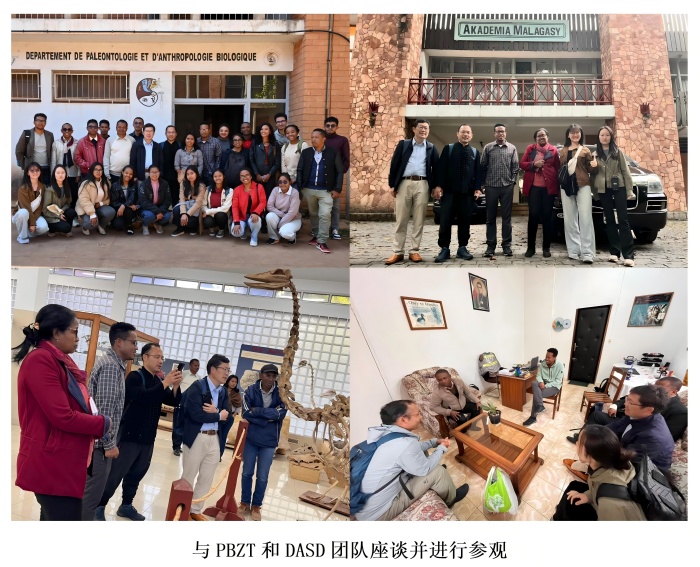 为探索这些问题,2025年5月24日-6月13日, 分子古生物学学科组和昆明动物博物馆团队(张晓明和吉学平等5人)访问了马达加斯加塔那那利佛大学(Antananarivo University)人类生物学与可持续发展系(Department of Anthropobiology and Sustainable Development, DASD)和马达加斯加科学院(Academy Malagasy),与这里的师生开展了学术交流活动,参观了国家博物馆、Tsimbazaza动植物园(Parc Botanic and Zoologic of Tsimbazaza, PBZT),并与PBZT院长Rokiman Letsara研究员、DASD系主任Ranaivoarisoa Jean Freddy教授以及青年教师举行了双边座谈,围绕灭绝和现生狐猴的大规模基因组多样性研究、马达加斯加人群基因组研究、已灭绝侏儒河马古DNA基因组研究、考古发掘、洞穴调查、样本采集保存运输方案、建立国际联合实验室,以及中马青年科技人才培养与交流等方面展开了讨论,达成了共识。我方主要表达了单位/机构间建立长期战略合作伙伴关系的意愿,马方主要表达了在我方的支持下建立健全标准化博物馆、自动化标本库、电子化标本管理系统等愿望。访问期间,团队在马方的陪同下,考察了马达加斯加北部的Ankarana国家公园和Andrafiamena-Andavakoera保护区,调查了5个喀斯特地貌洞穴遗址,发现了一些灭绝狐猴和大型鸟类等亚化石标本,获得了早期人类的定居和活动区域重要线索,并访问了最北部安奇拉纳纳省(Antsiranana)沿海地区源自非洲的狩猎-采集人群定居点。