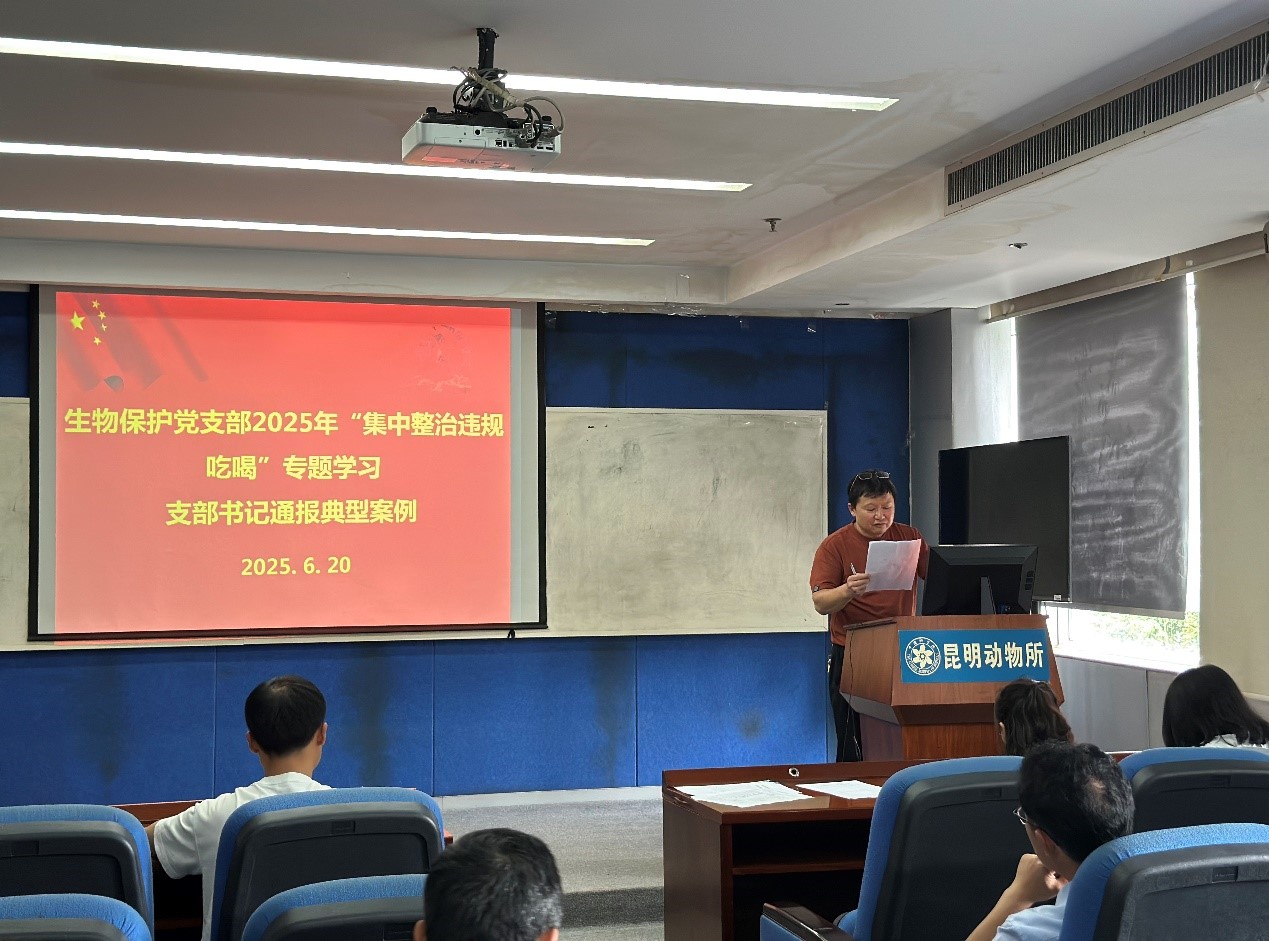 6月20日上午, 生物保护党支部开展“集中整治违规吃喝”专题学习,支部党员、积极分子以及青年理论学习小组成员等共24人参会,会议由支部副书记杨劲松主持。