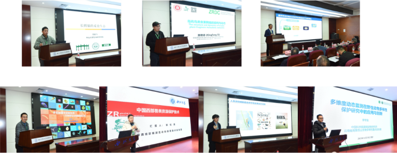 会议期间,中国科学院水生生物研究所缪炜研究员作题为“多彩的原生动物世界——万种原生生物基因组计划”的报告;西北大学齐晓光教授作题为“灵长类动物社会系统多样性的演化机制”的报告;中国科学院动物研究所刘山林研究员作题为“Surviving the Chill: Cold Adaptation and the Diversity of the Eastern Honey Bee (Apis cerana)”的报告;中山大学范朋飞教授作题为“长臂猿的觅食生态”的报告;华东师范大学斯幸峰教授作题为“岛屿鸟类食果网络的结构与动态”的报告;西北大学郭松涛教授作题为“中国西部兽类资源保护技术”的报告; 李学友副研究员做题为“多维度动态监测在野生动物多样性保护研究中的应用与创新“的报告。